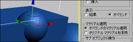 [パラメータ](Parameters)ロールアウト [表示](Display)が[結果](Result)に設定されている場合、オペランドを選択すると、ビューポートにオペランドの座標軸または変換ギズモが表示されますが、既定値ではオペランド自体は表示されません。