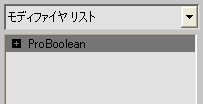 変更された ProBooleanオブジェクトを選択すると、モディファイヤ スタックには 1 つの展開可能な項目[ProBoolean]が表示されます。