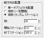 開始ステーションと終了ステーションの値は、さまざまな OPS 要素間で完全に独立しています。 たとえば、このパネルを使ってスプラインの最初の 80% に 20 m のダブル ランプ列を配置し、残りの長さに 12 m のシングル ランプ列を配置することができます。
