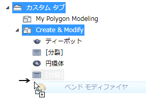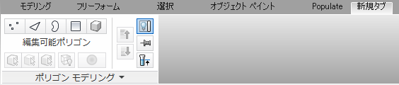 [ポリゴン モデリング](Polygon Modeling)パネル項目のコピーは、[カスタム タブ](My Tab)項目の子として表示されます。リボン上の[カスタム タブ](My Tab)タブをクリックして、コピーを確認します。これで独自のタブを配置できました。