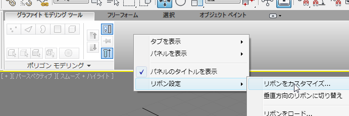 [リボンをカスタマイズ](Customize Ribbon)ダイアログ ボックスと[ユーザ インタフェースをカスタマイズ](Customize User Interface)(CUI)ダイアログ ボックスにある機能を使用して、特定のリボン パネルを開くキーボード ショートカット、ツールバー ボタン、メニュー項目を設定できます。20 個のショートカットが使用できます。ここではその方法について説明します。