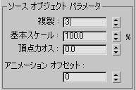 - [ソース オブジェクト パラメータ](source object)領域の[複製](Duplicates)でソース オブジェクトの複製の数を指定します。
