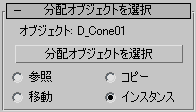 - 分配オブジェクトをスキャッタ オブジェクトに転送する方法を指定します。参照、コピー、インスタンス、または移動によって転送できます。移動の場合、元のシェイプは残りません。
