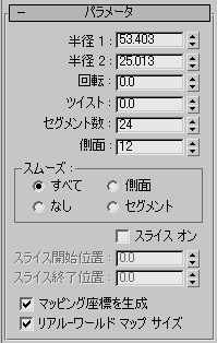 マップしたマテリアルを円環体に適用するための座標を自動的に生成します。既定値ではチェックマークが付いています。
