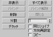 - [最後にバインド](Bind Last) リファイン操作で作成された一番最後の頂点を選択したセグメントの中心にバインドします。