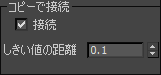 - [スレッショルドの距離](threshold distance)編集ボックスは、頂点を自動連結する直前の、頂点間の最小距離を制御する近接設定です。既定値は 6.0 です。
