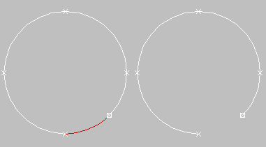 - [同じシェイプ](Same Shp) このチェック ボックスにチェックマークが付いている場合、[方向再設定](Reorient)が使用不能となり、[デタッチ](Detach)を実行すると、デタッチされたセグメントはシェイプの一部として保持されます(新規のシェイプを生成するのではありません)。[コピー](Copy)チェック ボックスにもチェックマークが付いている場合は、そのままの位置でデタッチされたセグメントのコピーが作成されます。