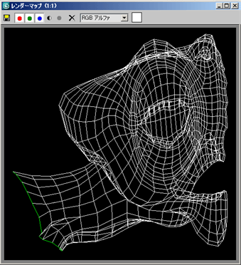 [レンダー UV](Render UVs)ダイアログ ボックスは、[UVW アンラップ](Unwrap UVW)エディタの一部であり、モデルのテクスチャ マッピング データをテンプレート(ビットマップ形式のイメージ ファイル)として書き出すことができます。その後、このテンプレートを 2D ペイント プログラムに読み込み、必要に応じてカラーを適用してから、3ds Max 内にテクスチャ マップとして再度読み込んでモデルに適用できます。書き出されるファイルは、エディタ ウィンドウのスクリーン ショットに似ていますが、バックグラウンドのテクスチャが含まれない点が異なります。また、このファイルには、カラー設定用のオプション、および範囲内のエッジと領域の両方に適用されるアルファ オプションが追加されています。