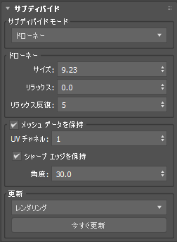 - [手動](Manual)手動で更新します。サブディビジョンは、[Esc]を押して中断できます。サブディビジョンが中断されると、更新モードが[手動](Manual)に変更されます。
