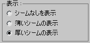 この設定では、マッピングの切れ目(継ぎ目)をビューポートで表示するかどうか、および表示の方法を指定します。[ギズモ](Gizmo)サブオブジェクト レベルがアクティブである場合に限って、継ぎ目は表示されます。
