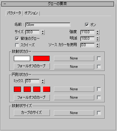 [グローの要素](Glow Element)ロールアウト、[パラメータ](Parameters)パネル
