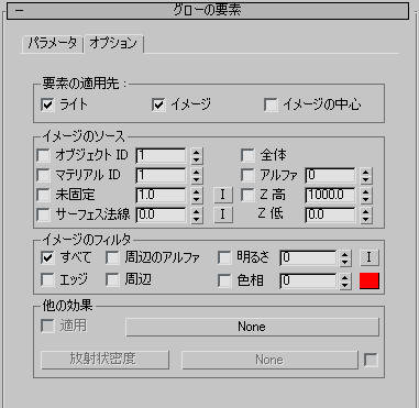 [グローの要素](Glow Element)ロールアウト、[オプション](Options)パネル