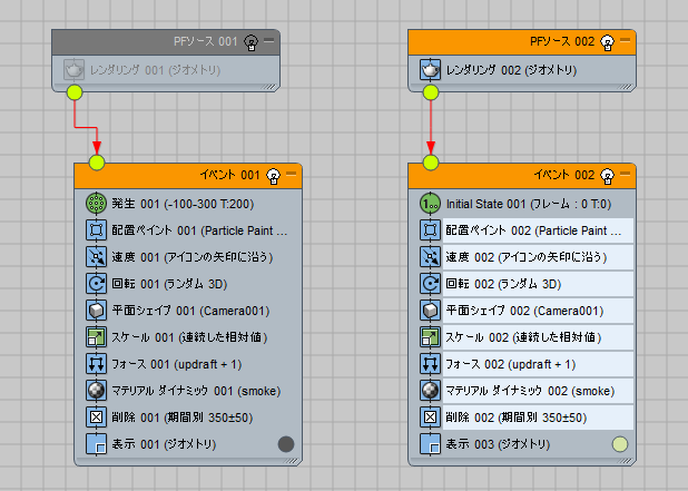 注: 依存関係のループを防ぐために、[初期状態](Initial State)オペレータは、初期状態の取得元とするパーティクル システムまたはイベントを作成した後で作成してください。