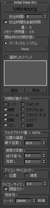 • 一方、[初期状態を計算](Calculate Initial State)をクリックした後は、パーティクル生成時に使用するデータを定義できます。