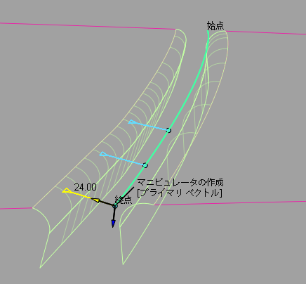 カーブは緑色にハイライト表示され、サーフェスはピンクになります。