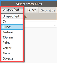 Alias で、操作するジオメトリを選択します。 使用するジオメトリが選択セットの一部である場合は、Use Selection Sets をオンにします。