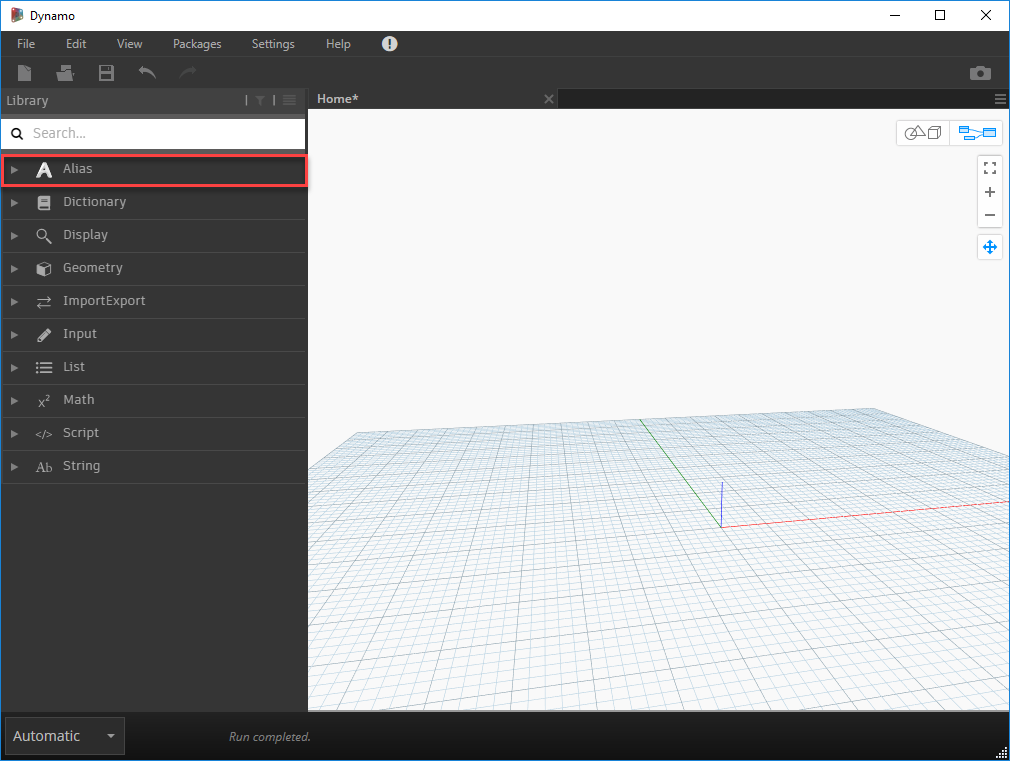 Library に Alias のカテゴリが表示されます。このカテゴリに、Alias-Dynamo ワークフローで必要となるノードが含まれています。