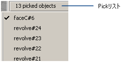 Pick リストで、カーブまたはサーフェスの集合から、単一のカーブまたはサーフェスを取り出します。白いテキストフィールドには、選択したコンポーネントの名前が表示されます。