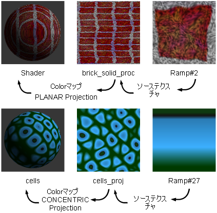 Projection テクスチャは、2 次元のテクスチャまたはイメージ ファイルを、一方向または複数の方向に投影することにより、3 次元のテクスチャに変換します。