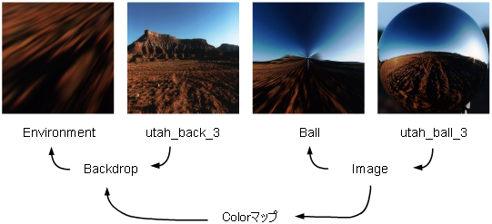 Ball Environment テクスチャを使用するには、作り直す環境の中にある周囲を反射しているクローム ボールのイメージで、テクスチャの Image パラメータをマップする必要があります。クローム ボールを使用せずに Environment のイメージを使用し、環境の Backdrop パラメータにマップすることもできます。