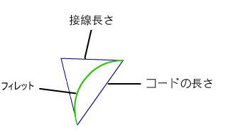 フィレットの 2 つのサイド間で維持される距離、または接線セグメントの長さ(上図参照)。