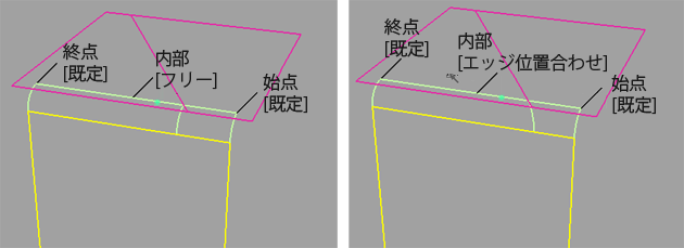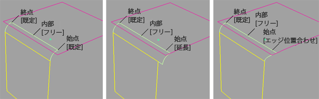 Default または Free – フィレットのエッジ(V 方向)が、90 度の角度で境界と合流します。