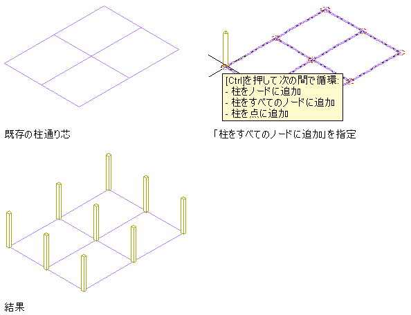 | 通芯のすべての節点に柱を追加するには | [Ctrl]を押して、クリックします。 |