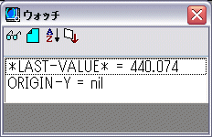 [ウォッチ]ウィンドウが表示され、このウィンドウに IDE グローバル変数 *LAST‑VALUE* の値が表示されます。 *LAST‑VALUE* 変数には、常に、最後に評価された式が格納されます。