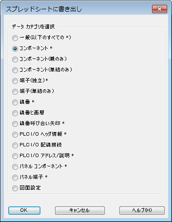 [汎用]データ カテゴリには、アスタリスクでマークされたすべてのカテゴリが含まれています。各カテゴリは、個別のワークシートまたはデータベース テーブルに書き込まれます。