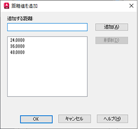 - [距離値を追加]ダイアログ ボックスで 24 と 48 を追加し、[OK]をクリックします。36 は、直線状パラメータの長さであるため、自動的に追加されます。