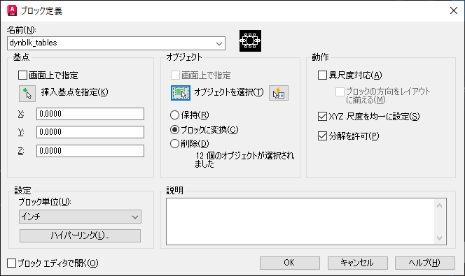 異なるテーブルと椅子の環境設定を持つ独自のダイナミック ブロックを作成します。