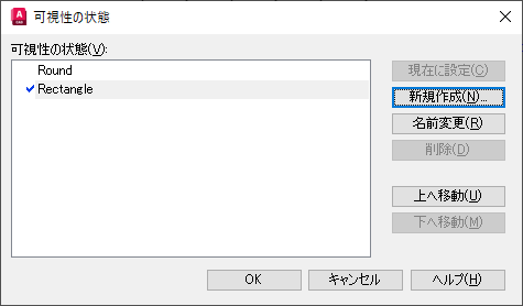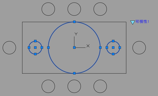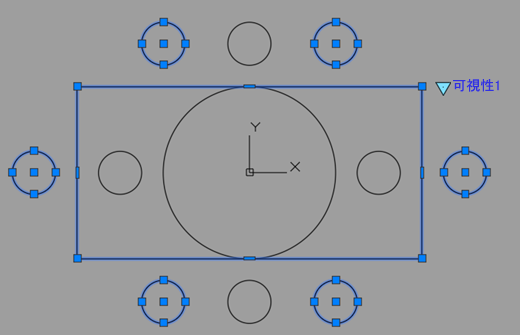 可視性の状態を使用して、任意の数の異なる環境設定のブロックを作成することができます。この例では、4 つの椅子を備えた円形のテーブルまたは 8 つの椅子を備えた長方形のテーブルのいずれかを表すブロックを作成します。