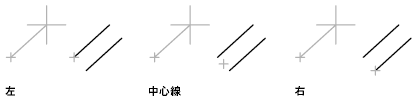 2 重線のオフセットは、オフセット値が負の場合は指定した点の左側になり、正の場合は右側になります。左右の位置は、線分の始点に立ち、終点を見ていると想像して決定します。