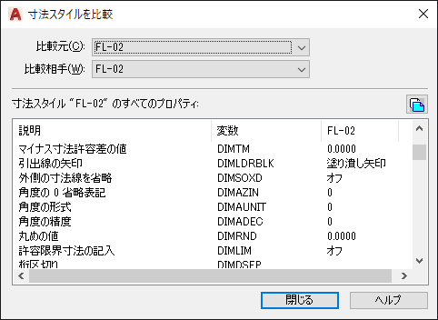 2 つの寸法スタイルのプロパティを比較したり、1 つのスタイルのすべてのプロパティが表示されます。