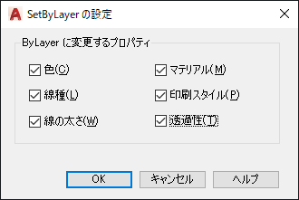 SETBYLAYER[ByLayer に設定] (コマンド) 検索: [設定(S)]