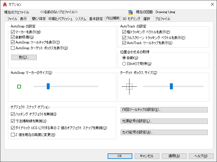 AutoSnap マーカー、ツールチップ、自動吸着をコントロールします。