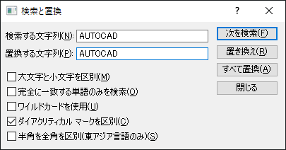 MTEXT[マルチ テキスト] (コマンド) 検索: テキスト エディタで[検索と置換]をクリックするか、マルチ テキスト ショートカット メニューから[検索と置換]を選択します