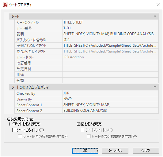 SHEETSET[シート セット マネージャ] (コマンド) 検索: シート セット内のシートを右クリック > [プロパティ]