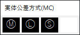 [幾何公差]ダイアログ ボックスの最初または 2 番目の公差値の MC ボックスにこの記号が挿入されます。
