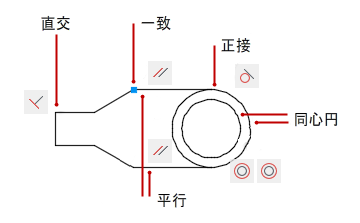 たとえば、ある線分を別の線分に常に直交させたり、円弧と円が常に同心円になるようにしたり、線分を円弧に常に正接させることができます。