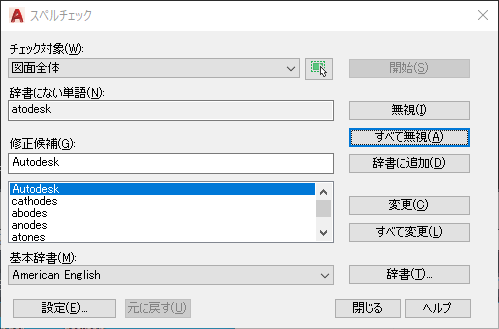 1 行文字、マルチ テキスト、マルチ引出線文字、ブロック属性内の文字、外部参照内の文字、寸法に追加された文字のスペルがチェックされます。