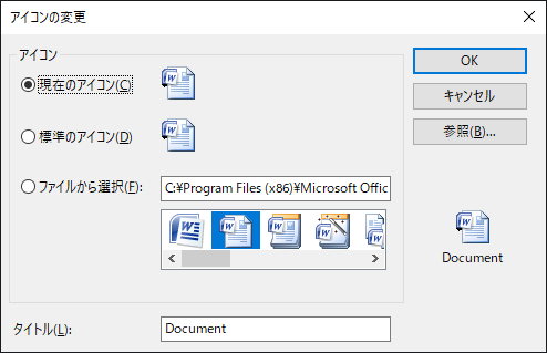 ファイルからアイコンを指定します(有効な種類は、EXE、DLL、ICO です)。