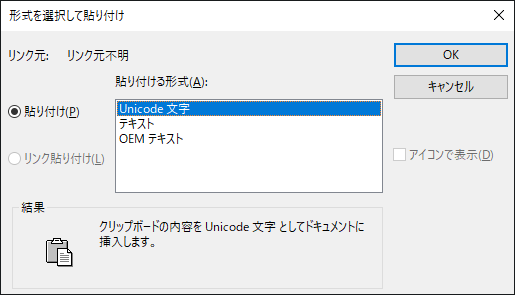 クリップボードの内容を現在の図面に貼り付けることができる形式が表示されます。