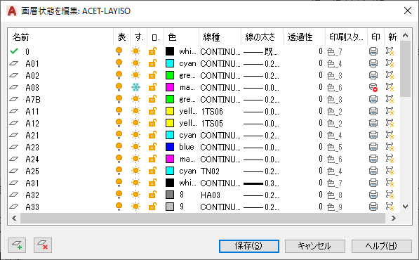 LAYER[画層管理] (コマンド) 検索: [画層状態管理] > [編集]