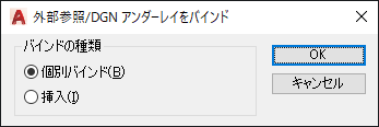 外部参照を現在の図面にバインドする場合、外部参照とそれに従属するすべての名前の付いたオブジェクトは現在の図面の一部になります。ローカルの定義テーブルに、外部参照に従属する名前の付いた個々のオブジェクト(ブロック、文字スタイル、寸法スタイル、画層、線種など)を追加するには、XBIND[個別バインド]コマンドを使用します。現在の図面に外部参照をバインドする方法には、[個別バインド]と[挿入]の 2 通りがあります。[個別バインド]は、外部参照が挿入されるときに、外部参照の定義テーブル名を変更します。[挿入]は、外部参照が挿入されるときに、外部参照の定義テーブル名を変更しません。ネストされた外部参照をバインドするには、親の外部参照を指定する必要があります。