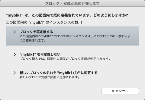 - ブロックのインスタンスを挿入します。現在の図面上のブロックのすべてのインスタンスが更新されます。