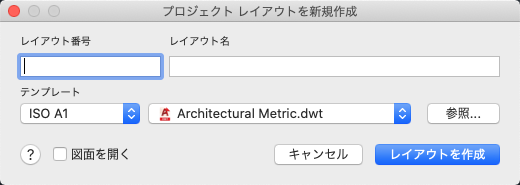 新しい図面の名前の付いたレイアウトの名前を指定します。