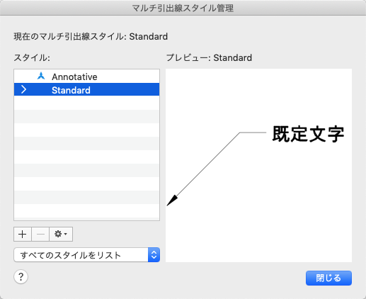 記入するマルチ引出線に適用するマルチ引出線スタイルの名称が表示されます。既定のマルチ引出線スタイルは、Standard です。
