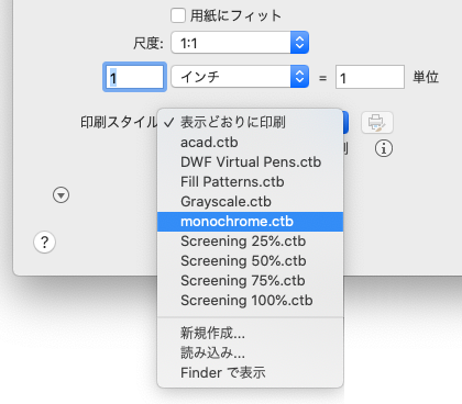 印刷スタイル テーブルは、色の処理に関する情報を提供します。モニタでは適切に表示されている色が、PDF ファイルや印刷に適しているとは限りません。たとえば、図面はカラーで作成しても、モノクロで出力したい場合もあります。ここで、モノクロ出力を指定する方法を説明します。