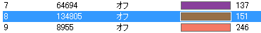 注: 表の[ピクセル数]列が変更され、インデックス 0 と 8 を除くすべてのカラーのピクセル数は 0 になっています。